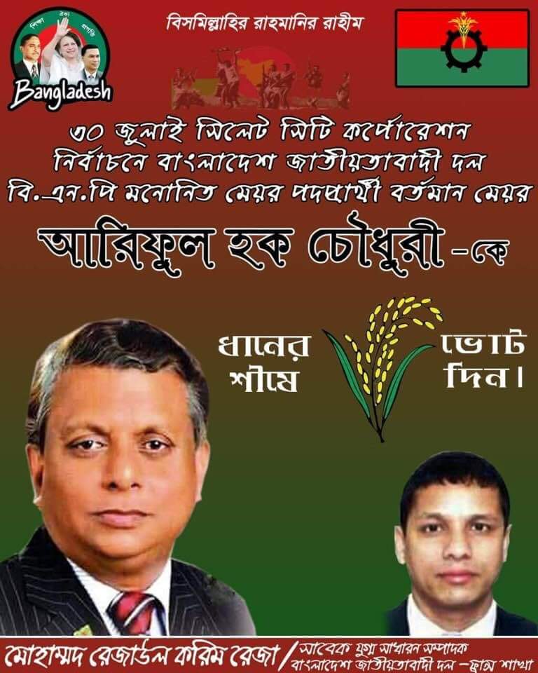 প্রেস বিজ্ঞপ্তি- সিলেট সিটি নির্বাচনে একটি পরিকল্পিত নগরি গড়তে বর্তমান মেয়র আরিফুল হককে পুনরায় নির্বাচিত করতে নগর বাসীকে আহবান জানিয়েছেন