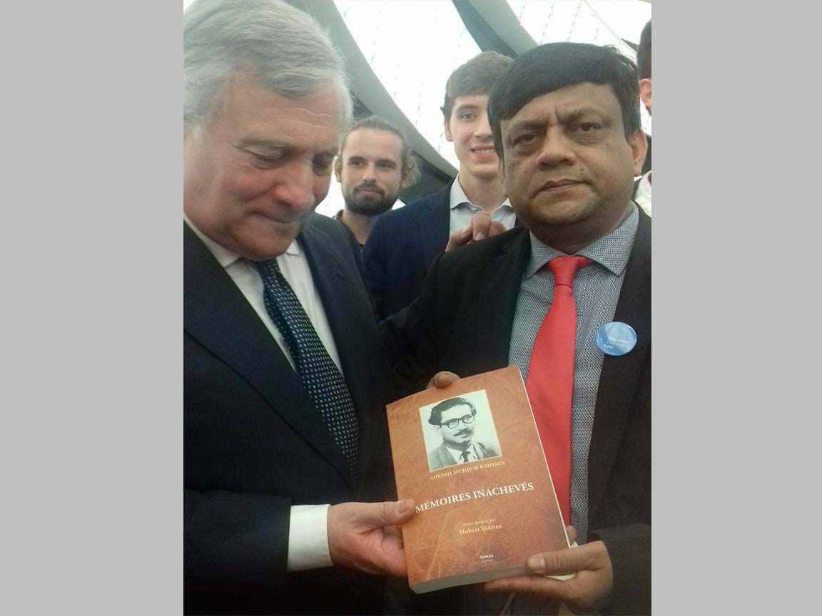 ইউরোপীয় পার্লামেন্টের প্রেসিডেন্ট অ্যান্টোনিও তাজানিকে ফরাসি ভাষায় প্রকাশিত জাতির জনক বঙ্গবন্ধু শেখ মুজিবুর রহমানের ‘অসমাপ্ত আত্মজীবনী’ গ্রন্থ উপহার দিয়েছেন রাজবাড়ীর