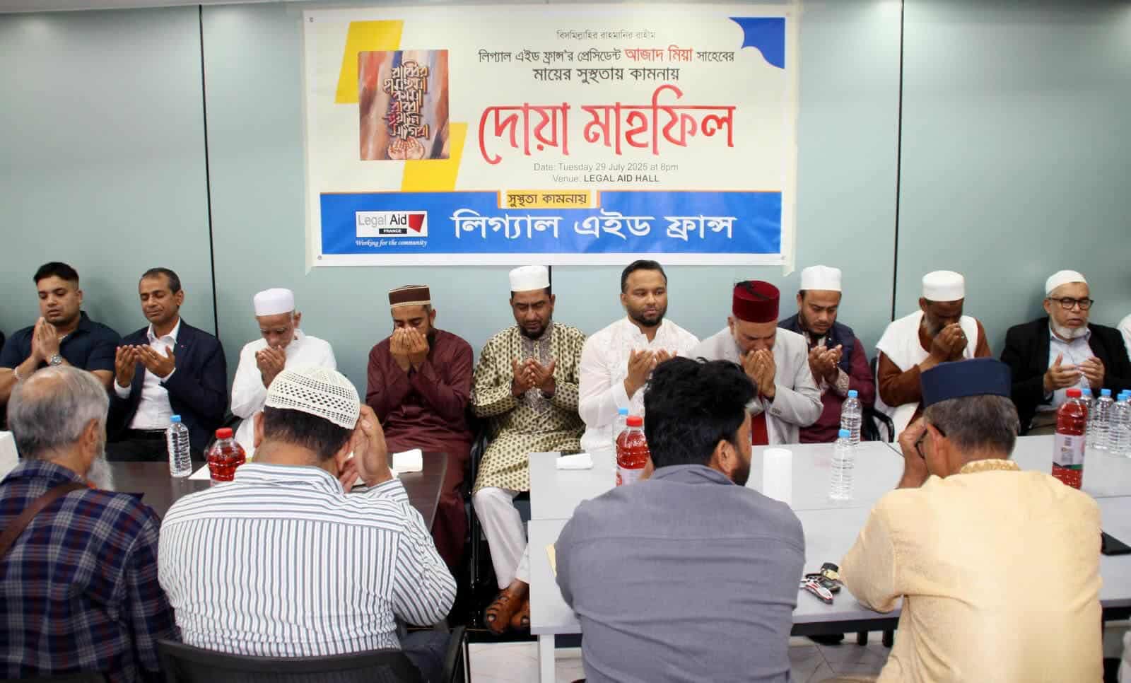 লিগ্যাল এইড ফ্রান্স’র প্রেসিডেন্ট আজাদ মিয়া’র মায়ের সুস্থতা কামনায় গত ২৯ জুলাই ২০২৫ মঙ্গলবার সন্ধ্যা ৮ ঘটিকার সময় লিগ্যাল