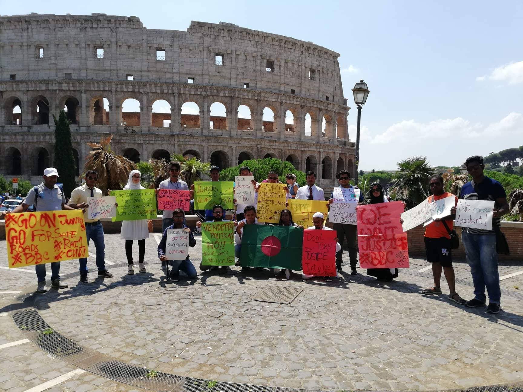 ইতালীর রাজধানী রোমে বিশ্বের অন্যতম আশ্চর্য কোলসিয়ামের সামনে দেশে নিরাপদ সড়ক চাই ছাত্র আন্দোলনের সাথে একমত প্রকাশ করে মানব বন্ধন