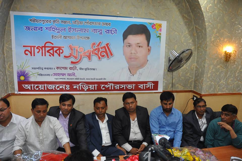 লাবন্য চৌধুরী ইটালী: ইটালীর রাজধানী রোমের ফ্লেভার্স অফ ইন্ডিয়া রেষ্টুরেন্টের হল রুমে নড়িয়া পৌরসভাবাসী আয়োজন করে একটি নাগরিক সংবর্ধনার। শরিয়তপুরের